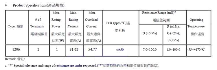 * 阻值范圍寬廣 阻值從 1 mR - 1R